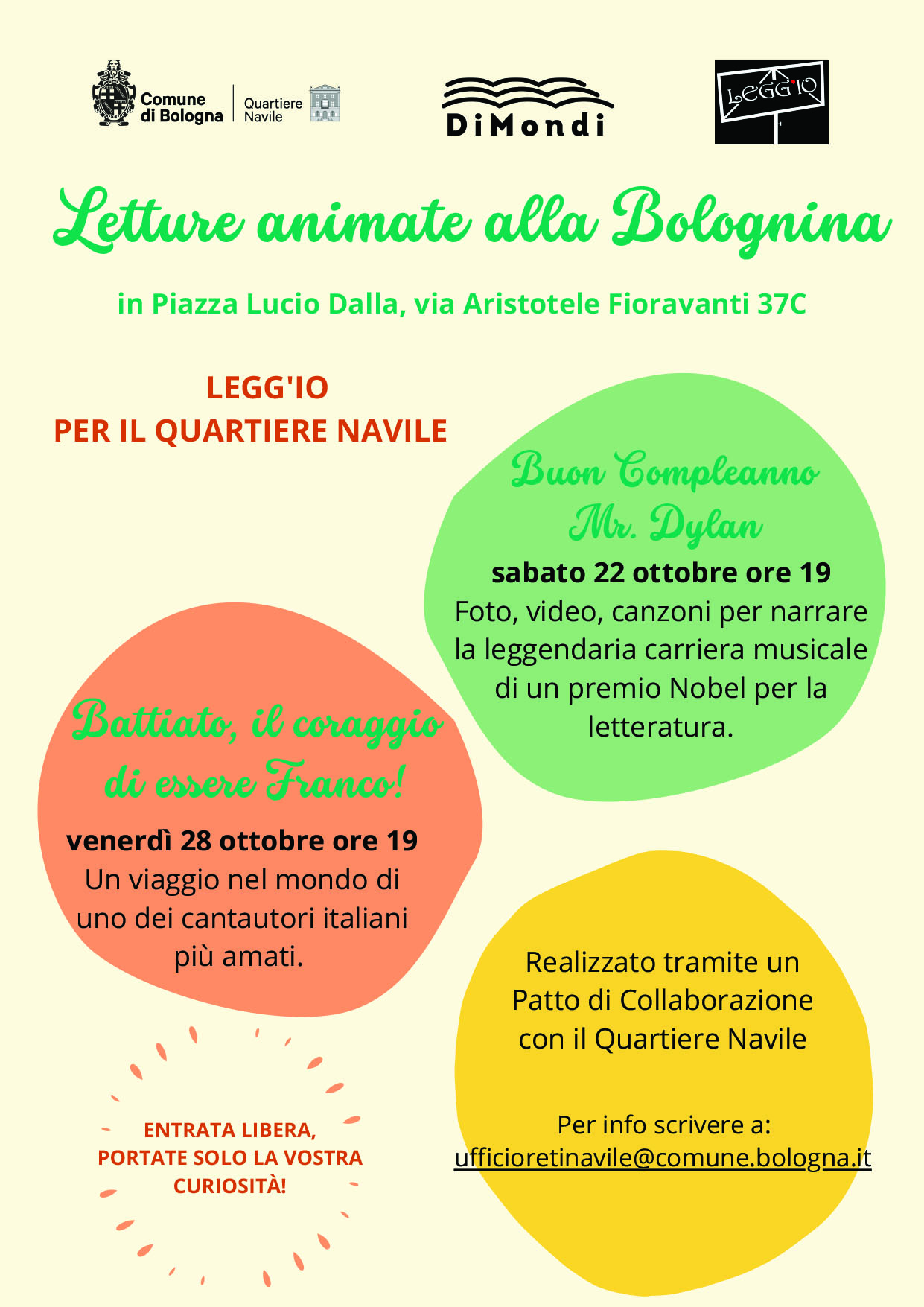 In Piazza Lucio Dalla si svolgeranno due letture animate a cura di Legg'io per il Quartiere Navile: