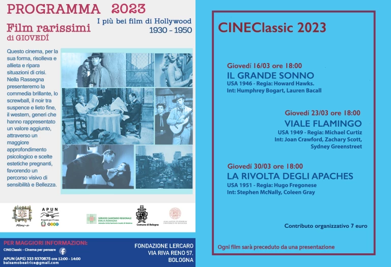 Da giovedì 16 marzo a giovedì 30 marzo 2023 nuova rassegna CINEClassic con tre film del grande cinema hollywoodiano, con bellissime opere di Howard Hawks, Michael Curtiz e Hugo Fregonese.