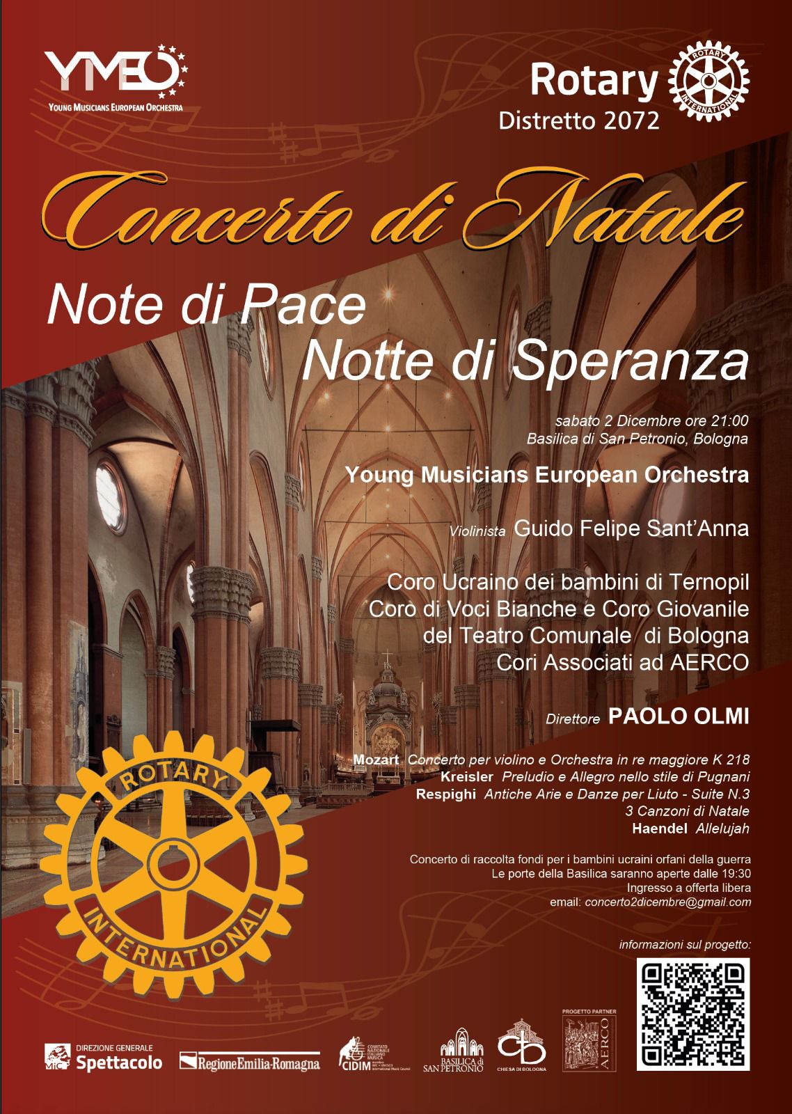 Il coro di accompagnamento sarà il Coro Ucraino dei bambini di Ternopil, il Coro di Voci Bianche e Coro Giovanile del Teatro Comunale di Bologna e Cori Associati ad AERCO.