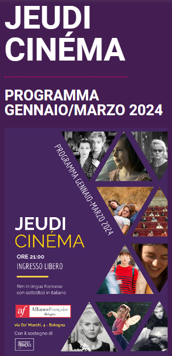 Prosegue la rassegna Jeudì Cinéma, l'offerta cinematografica dell'Alliance Française a Bologna, che offre al pubblico una varietà di opzioni, tra cui film, cortometraggi, classici e nuove proposte del cinema francese e francofono.