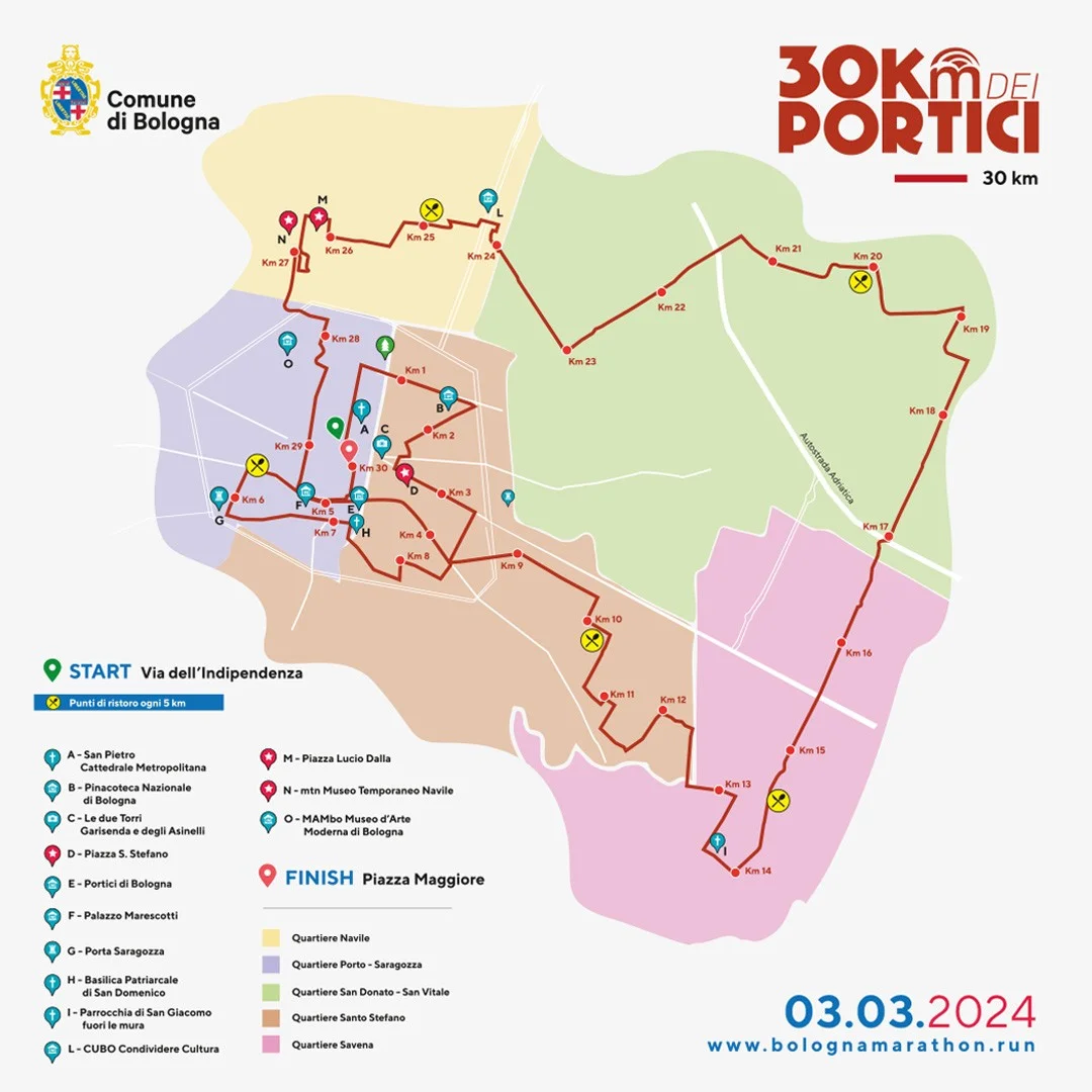 - -30 km dei Portici (30 km): partenza da via Indipendenza e arrivo in Piazza Maggiore;