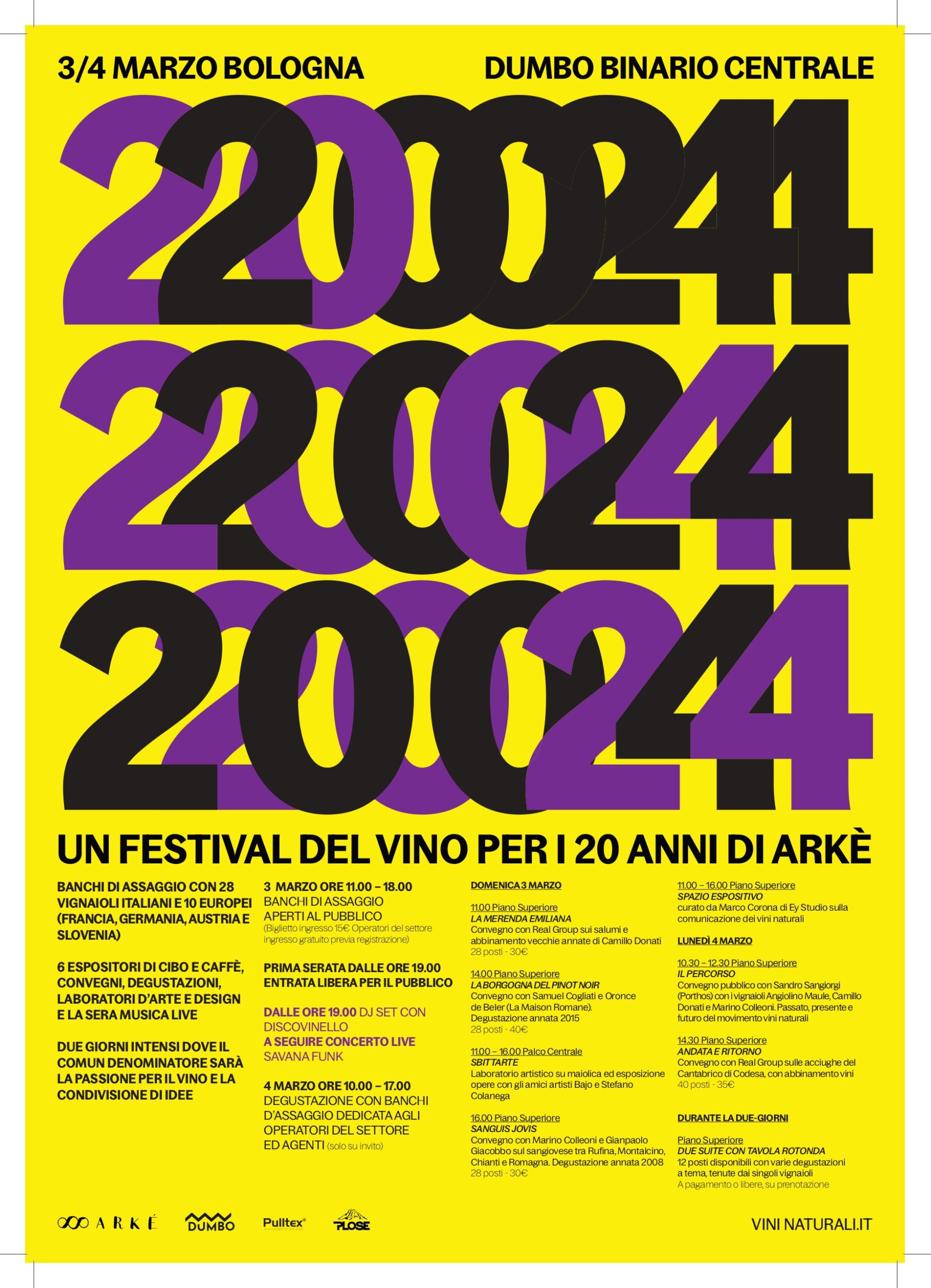 Domenica 3 e Lunedì 4 marzo ci sarà il festival del vino per i vent'anni di Arkè, al Dumbo Binario Centrale.